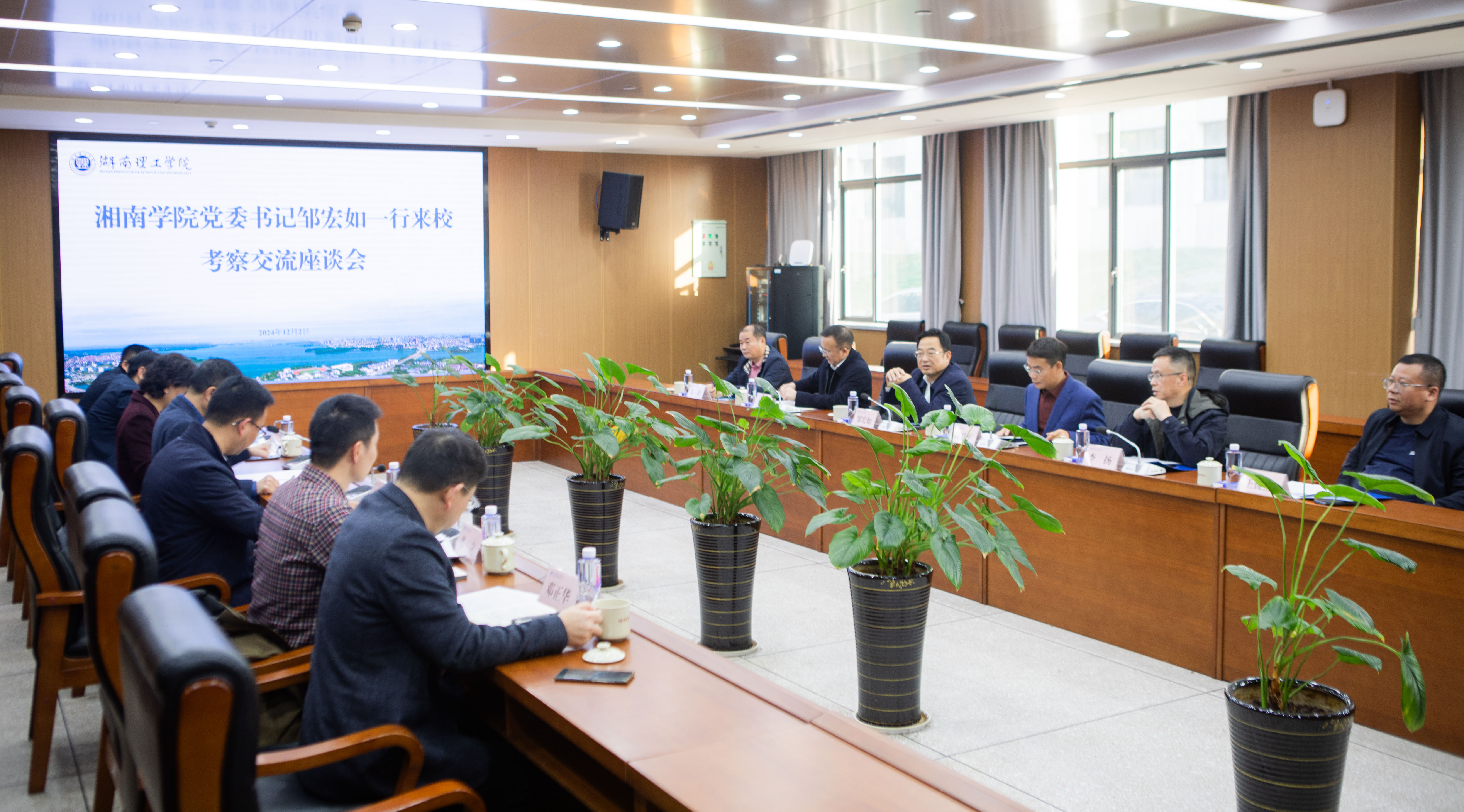 校园网讯 12月2日下午,湘南学院党委书记邹宏如一行来校,就高层次人才引进、科技成果转化及办学治校等方面展开交流。邹宏如一行在校党委书记张国云陪同下,先后参观了校园和办学成果展。在随后召开的座谈会上,张国云对邹宏如一行到来表示欢迎,并简要介绍了学校基本情况。邹宏如介绍了湘南学院的发展现状和未来规划,并表示此次来访旨在加强两校之间的交流与合作,共同推动高等教育事业发展。在交流环节中,双方就高层次人才...