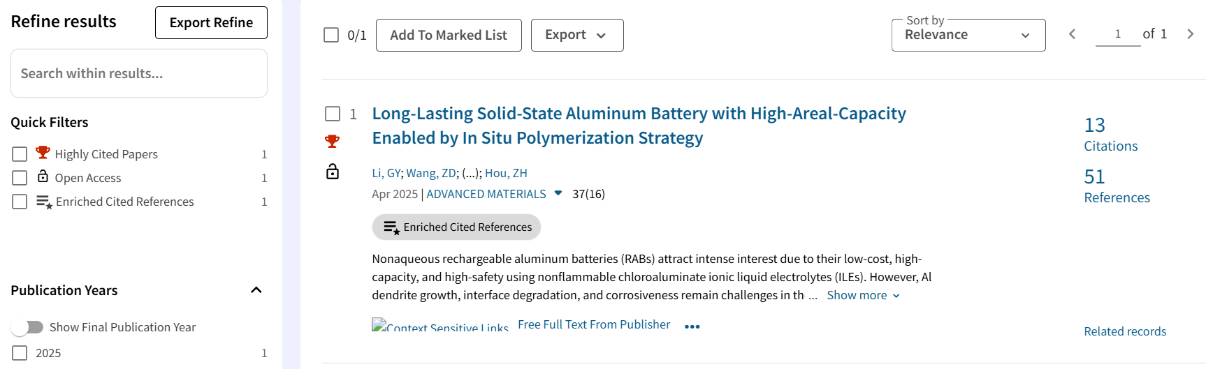 根据基本科学指标数据库(Essential Science Indicators,ESI)2025年11月发布的最新数据,AC米兰侯朝辉教授团队于2025年3月发表在《Advanced Materials》(中科院一区TOP期刊,影响因子26.8)上的研究论文“Long-Lasting Solid-State Aluminum Battery with High-Areal-Capacity Enabled by In Situ Polymerization Strategy”入选材料科学领域全球前1%高被引论文。化学化工学院青年教师李刚勇博士为该论文第一作者及通讯作者,...