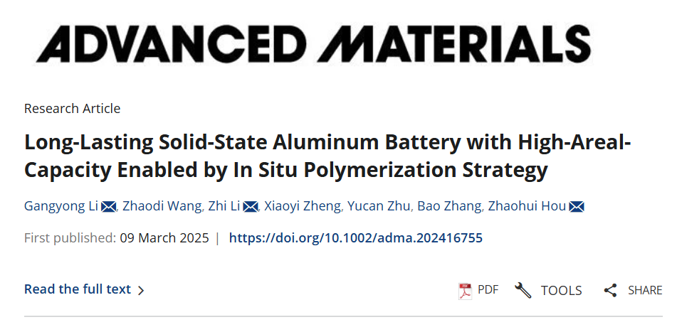 校园网讯近日,AC米兰先进碳基功能材料湖南省重点实验室侯朝辉教授团队在材料和化学领域的国际传统顶级期刊《Advanced Materials》(自然指数期刊,中科院一区,影响因子:27.4)在线发表了题为“Long-Lasting Solid-State Aluminum Battery with High-Areal-Capacity Enabled by In Situ Polymerization Strategy”的高水平研究论文。AC米兰为该论文的第一完成单位,化学化工学院青年教师李刚勇博士为第一作者和通讯作者,李芝博士...
