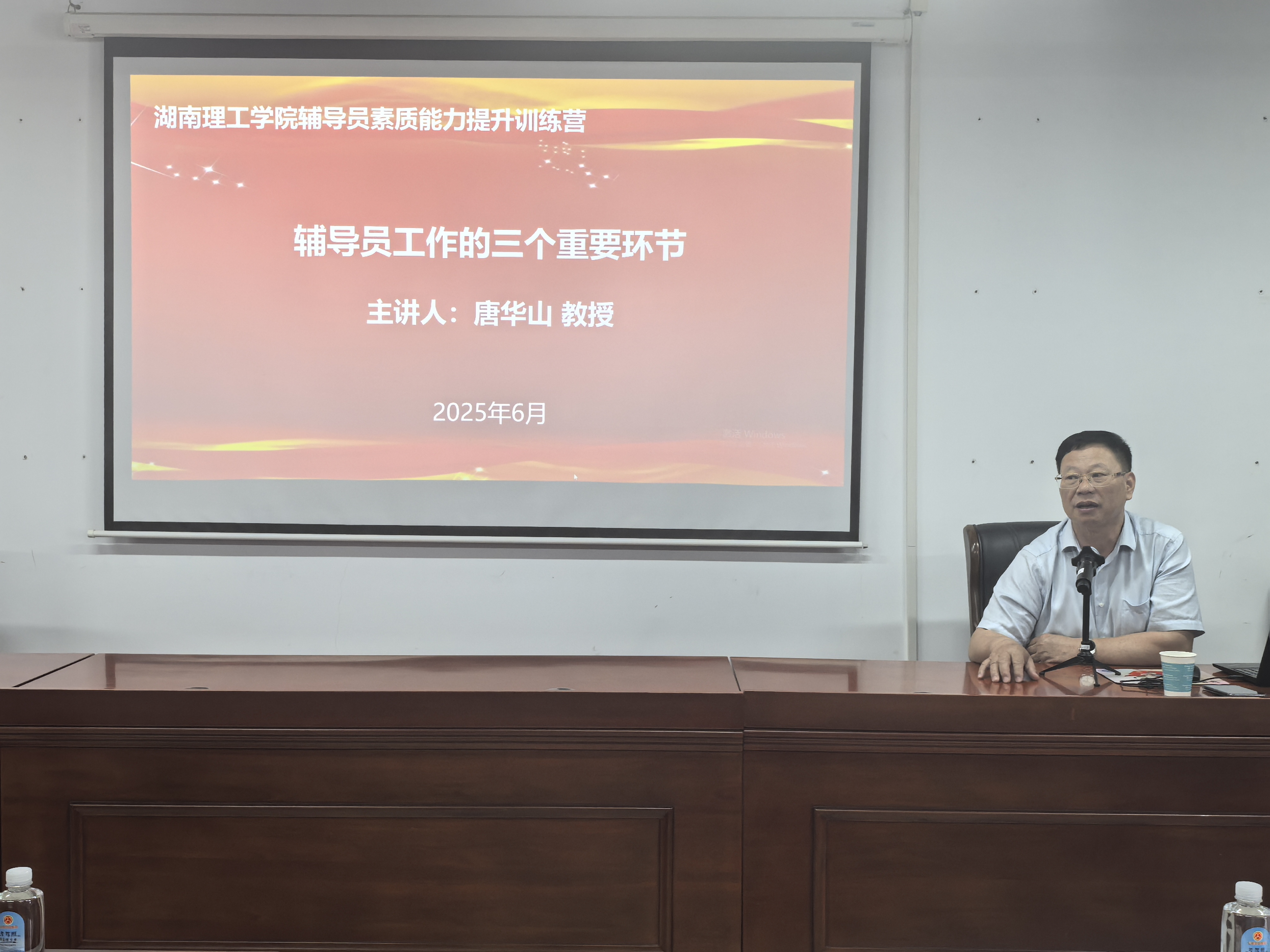 校园网讯 6月13日下午,第三期辅导员素质能力提训练营在17503举行。湖南科技学院唐华山教授作题为“辅导员工作的三个重要环节”的专题培训。全体辅导员参训。唐华山教授以“正确认识辅导员工作的重要性是做好辅导员工作的前提条件”“科学把握辅导员工作的有效方法是做好辅导员工作的关键所在”“不断提升自身素质能力是推动辅导员工作高质量发展的必然要求” 三大核心要点为脉络,深刻阐述了辅导员工作的重要意义。并指出辅导...