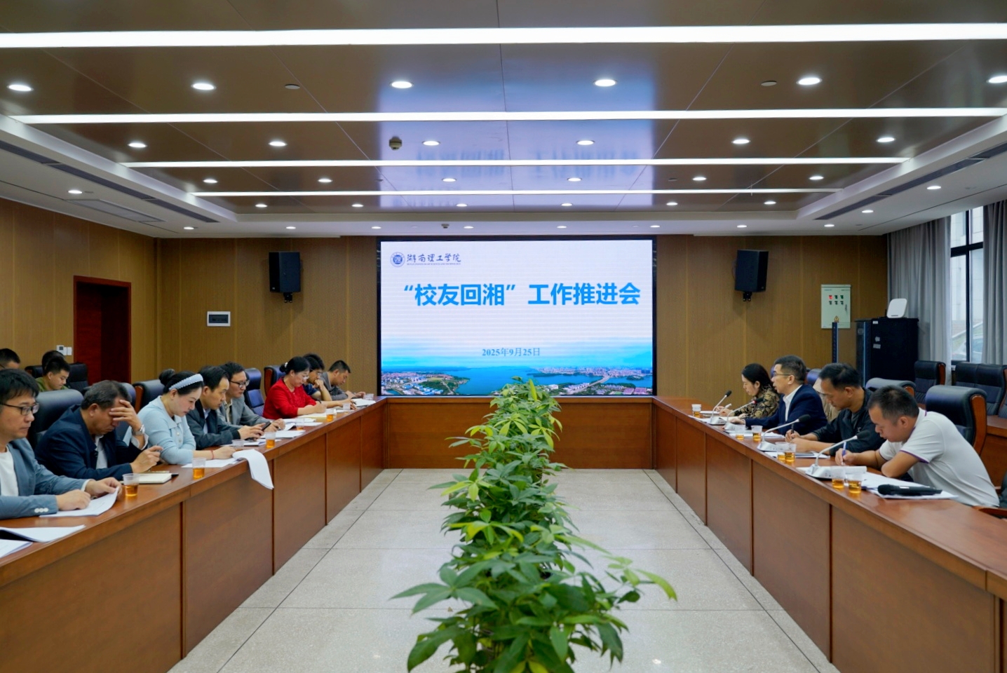校园网讯9月25日上午,学校2025年“校友回湘”工作推进会在17105会议室召开。校党委委员、副校长徐振祥参加会议并讲话。校友联络中心(教育基金会)全体工作人员、各学院校友工作组组长及专(兼)职干事参加会议。徐振祥充分肯定了过去一年学校“校友回湘”工作取得的成绩,指出校友工作是学校事业发展的重要组成部分,需全校共同重视、协同推进。他就进一步做好“校友回湘”工作提出四点要求:一是“工作认识登高望远”,要将...