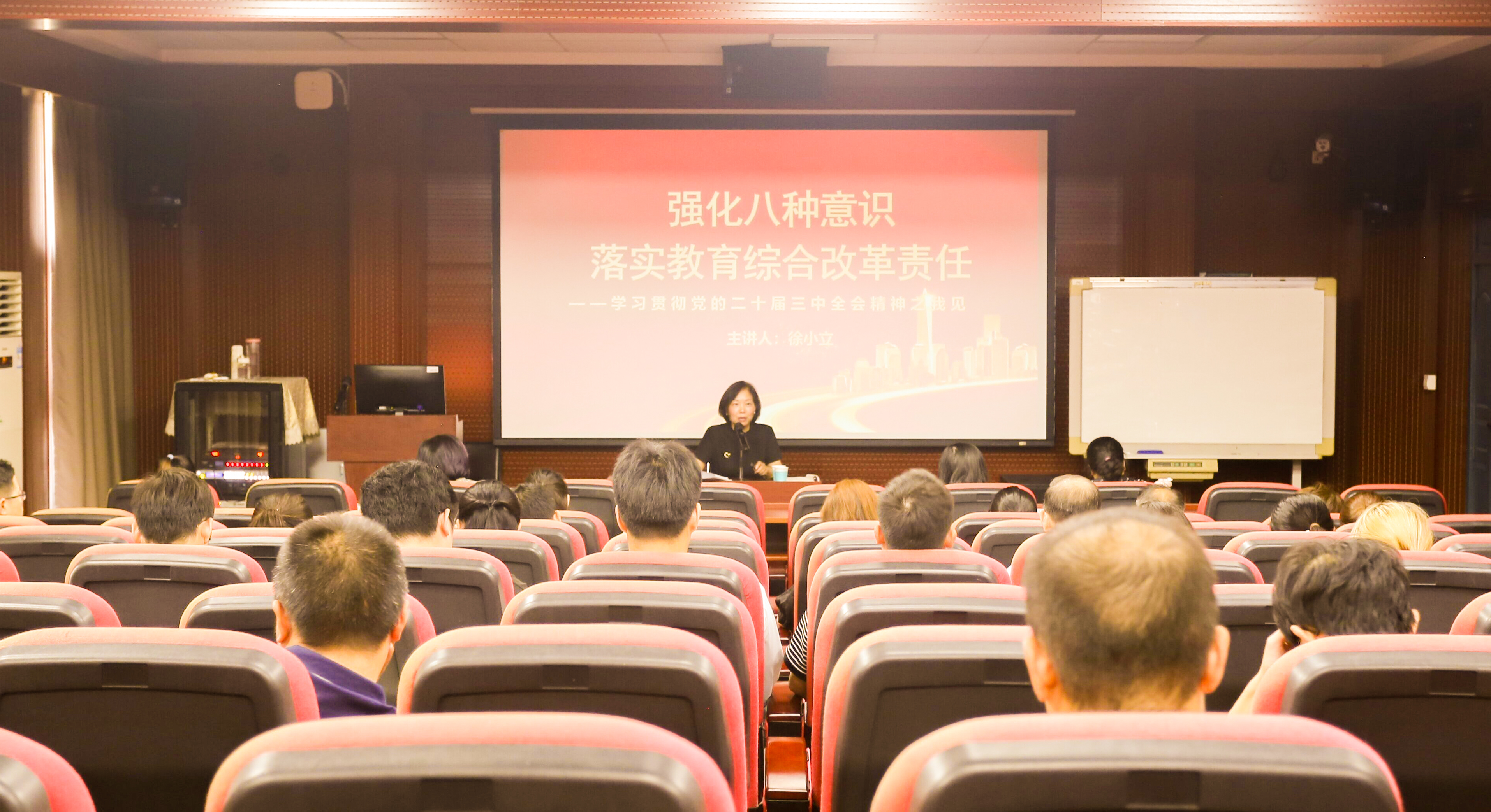 校园网讯 9月27日下午,学校党委副书记、统战部部长徐小立在16521教室为党外代表人士宣讲党的二十届三中全会精神。报告会上,徐小立以《强化八种意识 落实教育综合改革责任》为题,围绕习近平总书记在党的二十届三中全会上的重要讲话和全会《决定》,结合教育工作实际,从全面准确领会全会的精神实质和核心要义、强化八种意识,落实教育综合改革责任等方面进行了系统阐释和全面解读。报告主题鲜明、站位高远、内容丰富、脉络清...