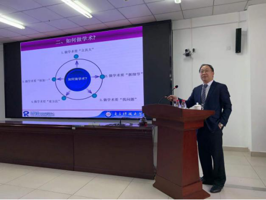 黄洪钟教授从如何学习、如何做学术、如何发表高水平论文、如何快乐生活等几个方面,系统地讲解了研究生阶段高效学习和研究的方法和技巧。报告内容深入浅出,活泼生动,参会学生认真学习并就相关内容进行了热烈讨论。