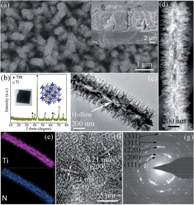 针对这一问题,近期必赢官网文伟教授团队以复杂空心结构氮化钛合金薄膜的构筑为例,提出了“表面诱导”柯肯达尔效应,通过对固态材料的表面修饰,诱导柯肯达尔效应的产生。氮化钛(TiN)是一种金属间化合物型的合金材料,具有高电导率和高硬度的特点。利用“表面诱导”柯肯达尔效应,成功获得了具有空心结构的分级氮化钛3D阵列;用其组装的超级电容器具有“超快”充放电的能力,且具有超长的循环寿命(35万次以上)。相关成果发表于J. Mater. Chem. A期刊(中科院1区,影响因子10.733,论文链接https://pubs.rsc.org/en/content/articlelanding/2019/TA/C9TA07642E#!divAbstract),必赢线路检测3003no1为第一完成单位,论文第一作者及通讯作者为文伟教授,2016级硕士研究生姚金呈为第二作者,论文合作者包括浙江大学吴进明教授等。该研究工作得到了国家自然科学基金项目(项目编号51862005、51502065)的资助。