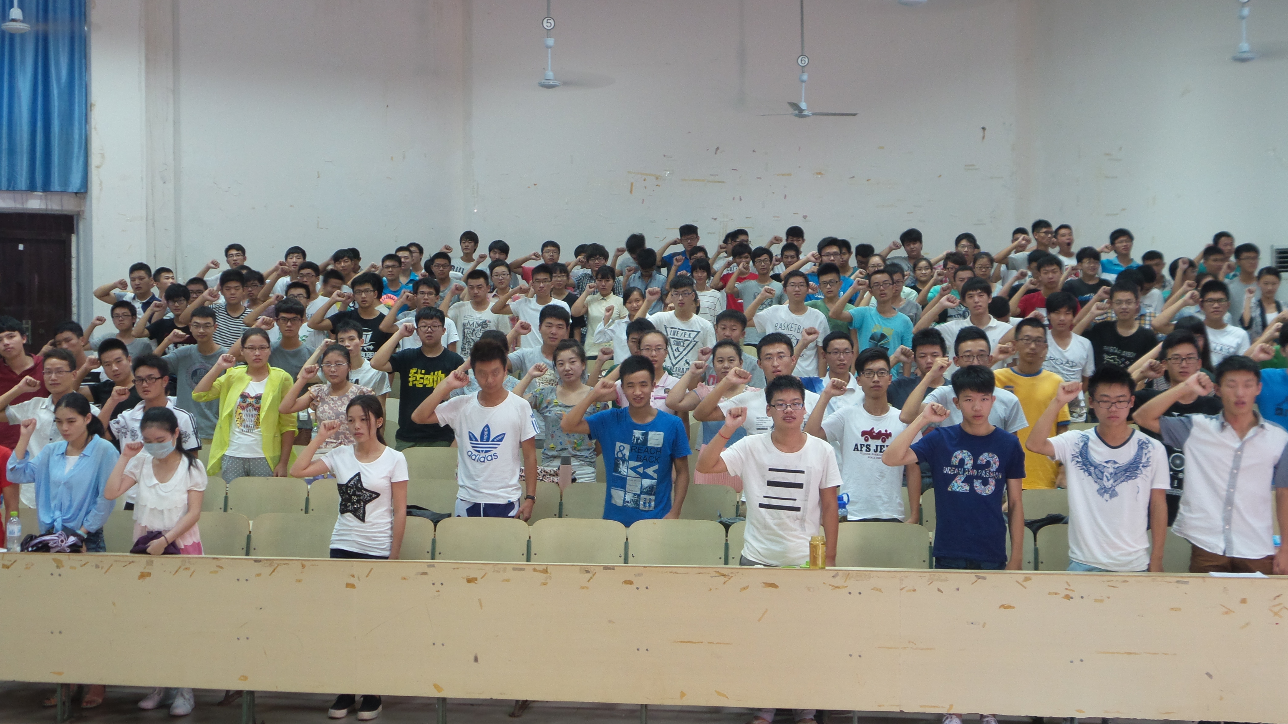 14级学生代表李炳坤宣读了承诺书,带领大家举行了宣誓仪式,承诺认真备考、诚信考试、信守承诺、磊落做人!