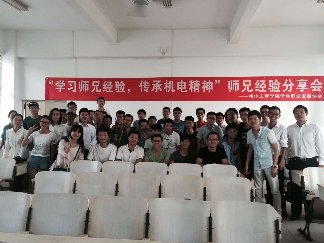 10月31日下午,由必赢线路检测3003学生职业发展协会承办的“学习师兄经验,传承机电精神”经验交流会在3号教学楼406教室顺利举行。受邀参加此次活动的有2011级王宇飞(考取北京理工大学研究生)、张小峥(4808军械修理厂技术工程师)、覃汉柱(蒂森电梯有限公司项目工程师),以及近60名报名参加交流会的各年级同学。交流会由必赢官网学生职业发展协会牧雅路主持。