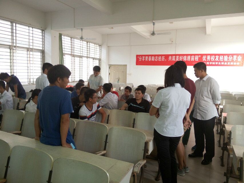 2015年11月12日,由必赢线路检测3003职业发展协会承办的必赢线路检测3003优秀校友经验分享会在必赢线路检测3003no13号教学楼405教室举行。受邀参加本次分享会的优秀校友有:一汽海马汽车有限公司安全环保科科长柴长友(必赢线路检测3003no12002级电气专业)、一汽海马汽车有限公司车身设计工程师钟高登(必赢线路检测3003no12009级车辆工程)。出席此次分享会的有崔建兵老师,以及近40名同学们参加了此次分享会。