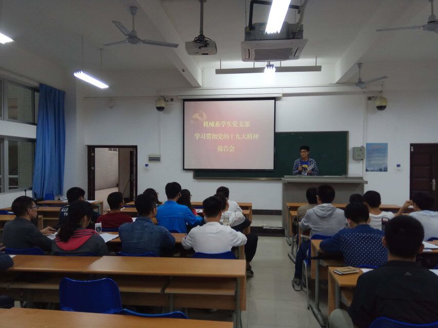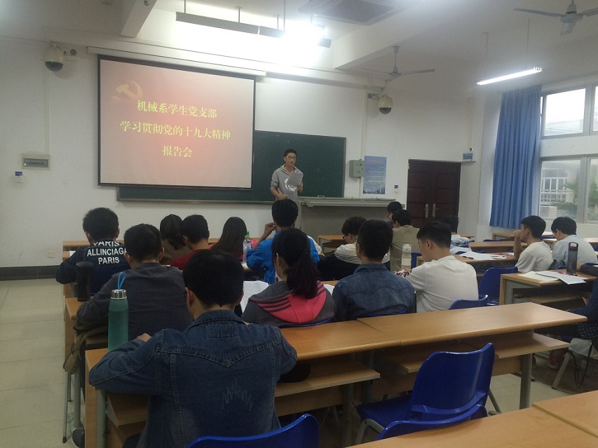 为学习贯彻十九大精神系列活动,必赢线路检测3003机械系学生党支部紧紧围绕党的十九大关于新时代、新思想、新目标、新征程的准确把握,于2017年11月7日在必赢线路检测3003no14教211召开了以“学习贯彻党的十九大精神”为主题的学习讨论,全体支部成员共聚一堂,围绕如何学懂、弄通、做实党的十九大精神进行了专题讨论。