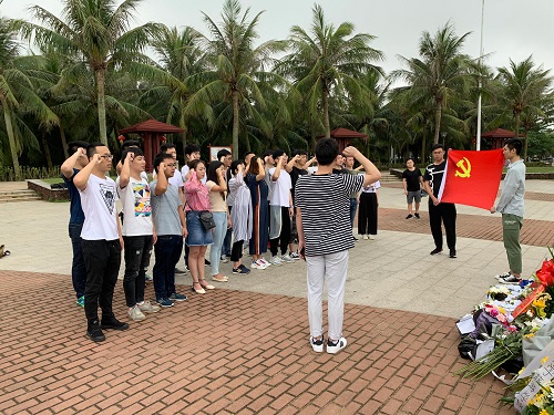 本次活动首先对渡海英雄的事迹以及纪念碑的历史进行了学习,由李志清同志带领大家为周围的群众详细地讲解了渡海作战的过程,并和他们进行交流,了解渡海作战的重要意义。在整个解放海南战役中,白沙门岛的渡海作战打得最悲壮、最惨烈,可以说没有这些英勇牺牲的烈士,就没有今天的美好的生活。介绍完烈士事迹后,大家怀着沉痛的心情一起默哀、鞠躬,缅怀先烈。最后,全体人员在卢浩同志的带领下重温了入党誓词。
