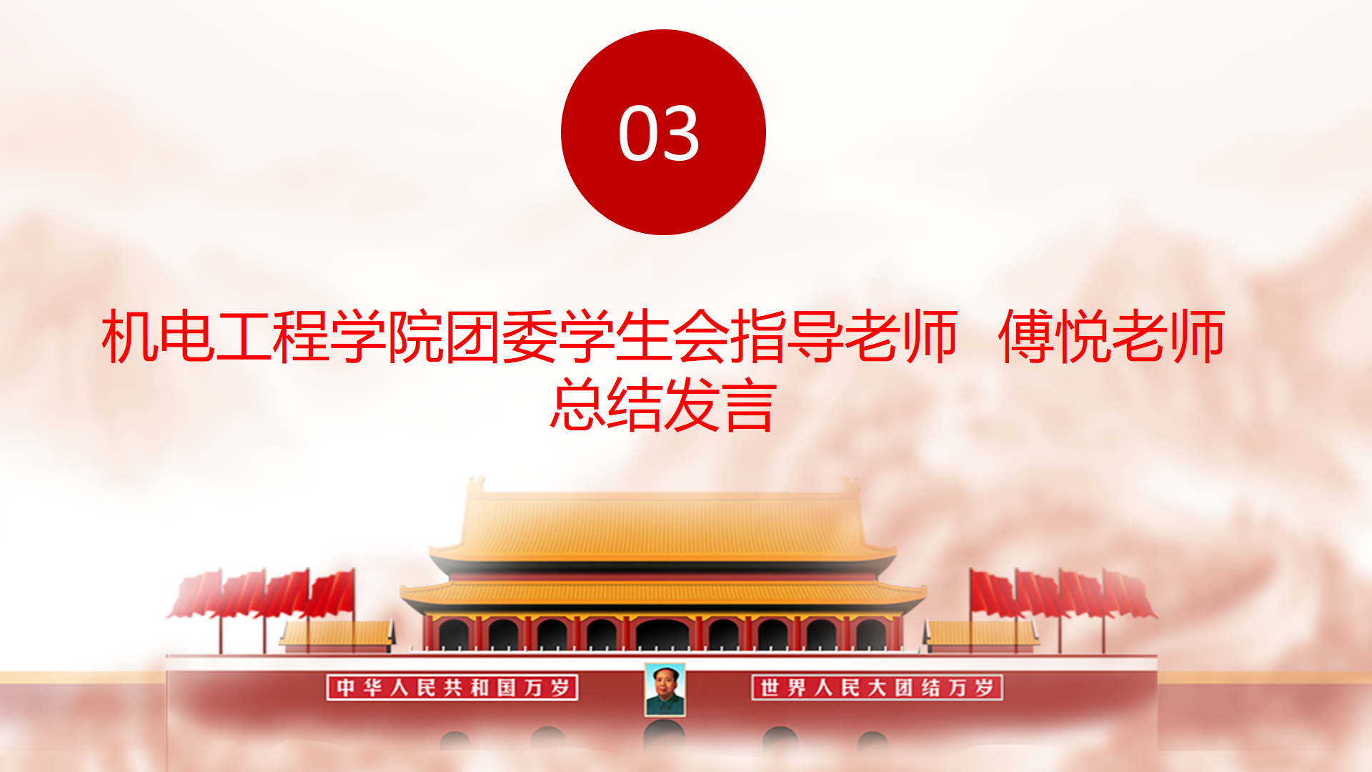 活动的最后,机电团委学生会的指导老师傅悦老师做了总结讲话。她表以抗日战争、朝鲜战争中为国捐躯的青年,以及上世纪60年代在戈壁滩为祖国研究两弹一星的党员青年为例,希望当代青年能够学习榜样的力量,能够在国家需要的时候站出来,成为国家的脊梁。她希望我们机电的学子们能够了解这个世界,认识中国所处的位置,在中华民族艰苦奋斗过程体会中华民族的伟大与美好。最后,傅悦老师祝愿必赢线路检测3003的学生们五四青年节快乐,并表达了希望我们向上想好,为中华民族伟大复兴的中国梦而努力奋斗。