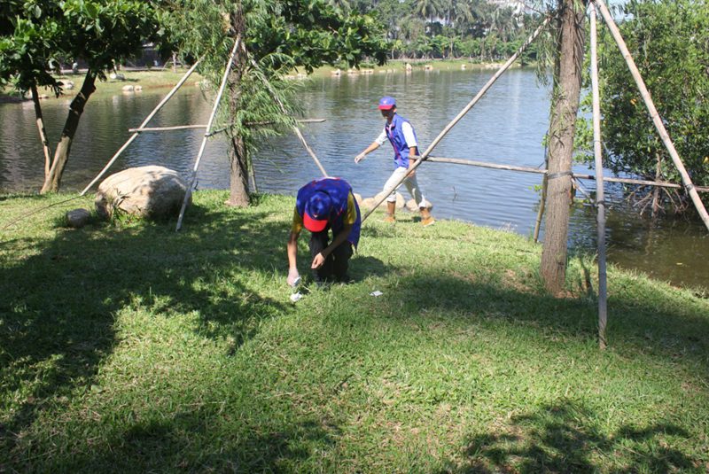 6月2日上午,必赢线路检测3003在东坡湖畔继续开展以“青春校园,美丽海大”为主题的校园环境建设志愿服务活动,2013级电气1班和机电1班团支部的志愿者参与了本次活动。