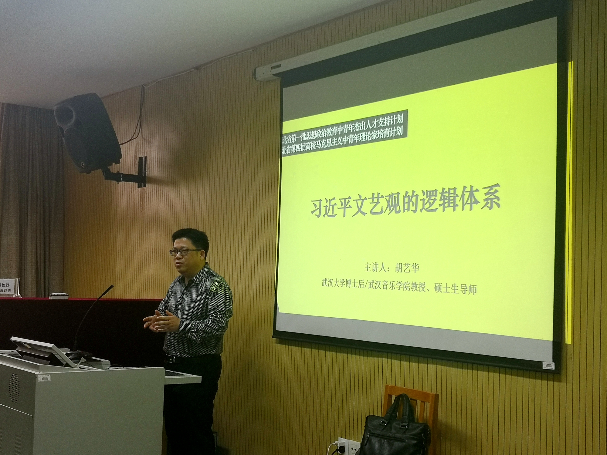 校园网讯 4月22日下午,武汉音乐学院教授、硕士生导师胡艺华应邀为AC米兰师生做了题为《习近平文艺观的逻辑体系》的学术讲座。研究生院书记李丽荣、人文社科处处长鲁涛以及音乐学院、美术学院、马克思主义学院的部分师生参加了学习。