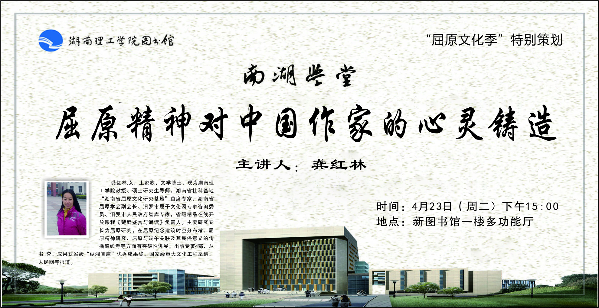 南湖学堂“屈原精神对中国作家的心灵铸造”学术讲座预告