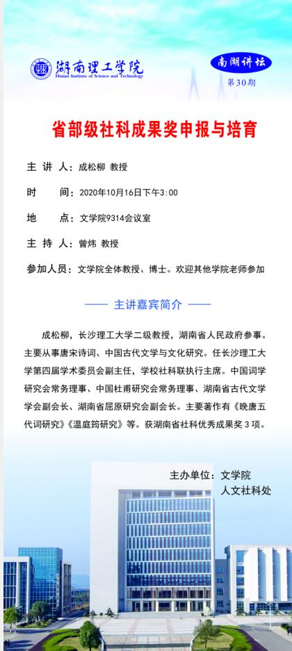 学术讲座预告—省部级社科成果奖申报与培育
