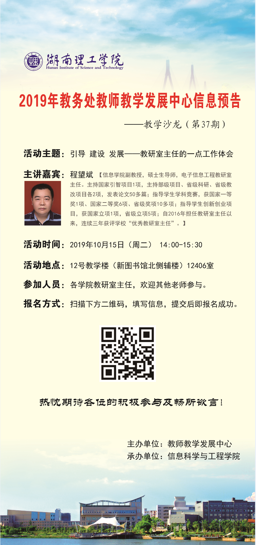 教学沙龙(第三十七期)活动预告:2019年教务处教师科学发展中心信息预告