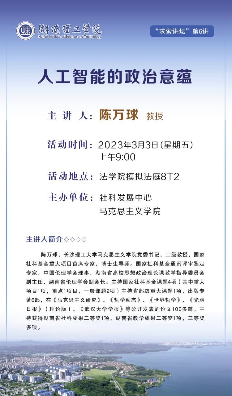 主讲人简介:陈万球,长沙理工大学马克思主义学院党委书记,二级教授,国家社科基金重大项目首席专家,博士生导师。国家社科基金通讯评审鉴定专家,中国伦理学会理事,湖南省高校思想政治理论课教学指导委员会副主任,湖南省伦理学会副会长。主持国家社科基金课题4项(其中重大项目1项,重点1项目,一般课题2项)主持省部级重大课题1项,出版专著6部,在《马克思主义研究》《哲学动态》《世界哲学》《光明日报》(理论版)《武汉大学学报》等公开发表的论文100多篇。主持获得湖南省社科成果二等奖1项,湖南省教学成果二等奖1项,三等奖多项。