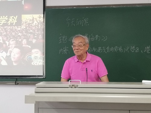 接着,程儒参教授进行相关授课讲解,并主持进行了现场自由提问的互动环节,同其他两位教授一起为同学们答疑解惑。大家都积极举手提出了自己的疑惑,诸如海口的房价升降问题,这与自由贸易区的建设是否有关;诸如自己的家乡位于海南某城市,该如何确定其定位并使之发展;诸如大量外来人员的进入是否会造成海南岛社会出现不稳定的状况,相关的法律应当如何制定等问题,程儒参教授就这些问题一一详细的提出了自己的见解,徐国定教授与王峻岩教授也适时补充说明。现场气氛活跃,掌声不断,大家也都受益匪浅。