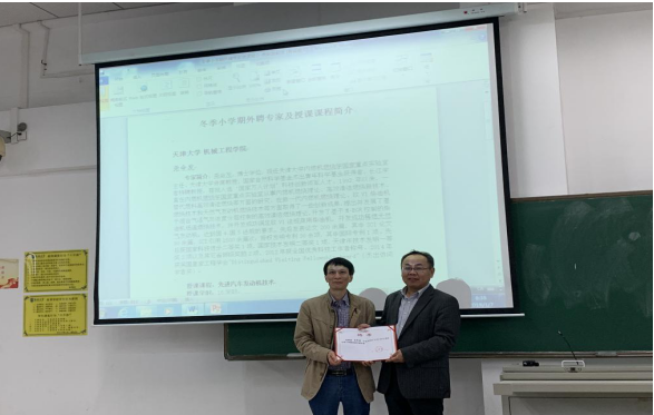 2018年1月7-9日,国家自然科学基金杰出青年科学基金获得者,天津大学内燃机燃烧学国家重点实验室主任、天津大学讲席教授,尧命发教授应邀来必赢线路检测3003进行冬季小学期授课。必赢官网党委书记黄国标主持开课仪式并向尧命发教授颁发冬季小学期外聘专家聘任证书。