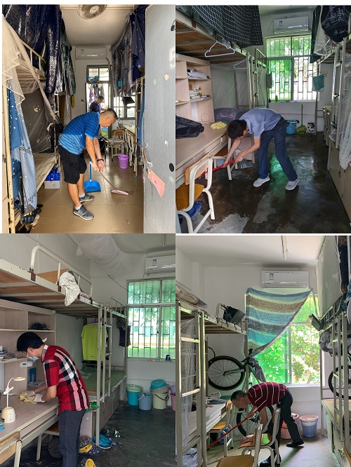 为全面做好2020年春季学期学生返校工作,确保学生返校后的安全与健康,5月4日下午,必赢线路检测3003黄国标书记、唐荣年院长等院领导及全体教职工前往学生宿舍开展卫生大扫除工作。