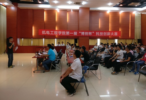 本次比赛经过层层选拔,共有李伟负责的开椰壹号、袁洋负责的基于多孔石墨烯的海水淡化装置、瞿好宇负责的多功能自动开椰器产品设计、朱凯峰负责的基于TRIZ理论的超声波智能环保喷雾风扇、戴浪负责的基于节能理念的自动烧结系统、刘静苑负责的太阳能-斯特林机结合高楼管道水力发电应用系统、郭琦负责的基予赛尔贝效应的浴室光热电一体化联产装置等七个团队进入了博创杯决赛。评委老师们在对各个团队表示肯定的同时,也提出了自己的建议。