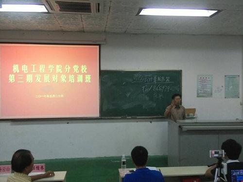 2017年5月20日15:3 0必赢线路检测3003no1分党校第三期发展对象培训班邀请程儒参、杨云山、林廷玖于1-T201讲授党课,报告由学工办主任、机械系第一学生党支部书记崔建兵主持。