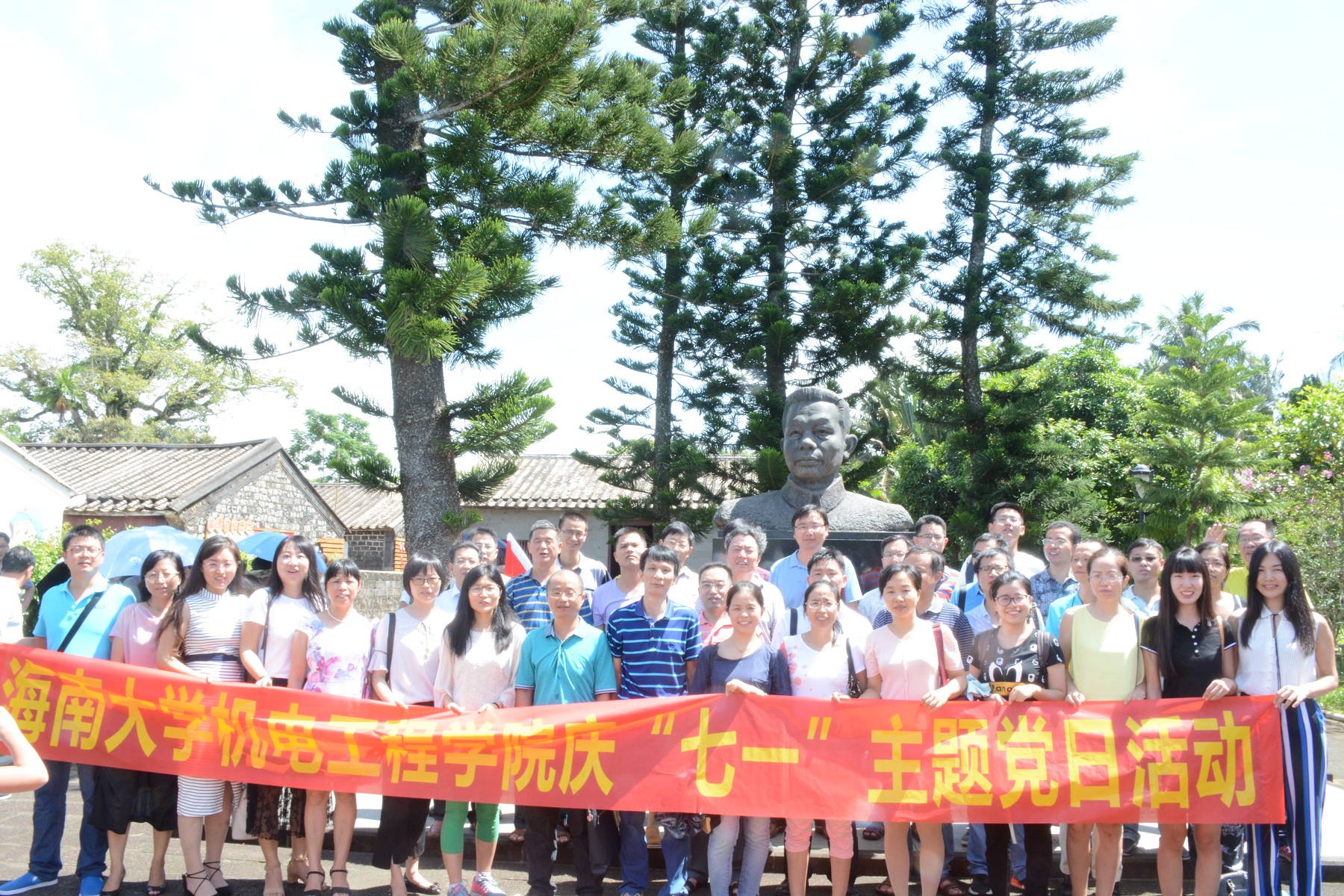 为了迎接党的96生日,深入贯彻“两学一做”学习教育常态化制度化,7月1日,必赢线路检测3003no1党委开展党日实践学习活动。在学院党委书记黄国标、副院长唐荣年、陈振斌、副书记李宏的带领下,全体教师党员40余人前往冯白驹故居、琼崖红军云龙改编旧址参观学习,进行现场爱国主义和理想信念教育。