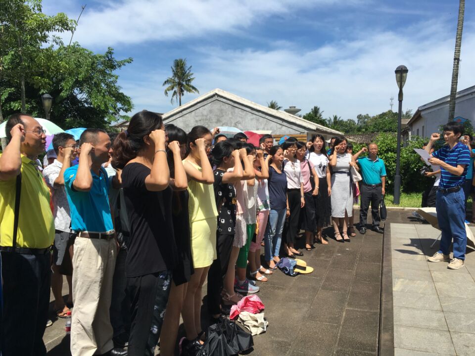 上午10点,党员们乘车到达冯白驹故居。全体党员认真听取黄国标书记讲解冯白驹将军英雄事迹,忆苦思甜,缅怀先烈,牢记历史。在冯白驹将军雕像前,面对鲜红的党旗,黄国标书记带领全体党员重温入党誓词,坚定理想信念。随后,党员们来到琼崖红军云龙改编旧址并参观陈列馆,在讲解员“小红军”的解说下,分别从“琼崖抗日战争的前奏”、“琼崖抗日战争的爆发”、“琼崖抗日战争的扩大”、“琼崖抗日战争根据地的建设”、“琼崖华侨支援战争”、“艰苦的反‘蚕食’反‘扫荡’斗争”、“日本侵略者在琼崖的暴行”、“琼崖抗日战争的胜利”八个部分,了解了琼崖抗日战争的坚苦卓绝,学习了革命奋斗精神,并激发了全体党员的爱国热情。最后,全体党员表示,会坚定不移地传承革命精神,牢记党的宗旨,全心全意教书育人、服务地方经济建设,不忘初心,继续前进。