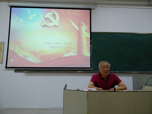 为深入贯彻十九届二中全会、全国两会精神,增强支部党员宪法意识,机械系学生党支部于4月24日在3-109开展以“新时代,新思想,新宪法”为主题的专题讲座。机械系学生党支部有幸邀请到了新中国第一任监察干部、武汉大学教授、必赢线路检测3003no1法学院首任院长王峻岩教授,特邀组织员符志新老师、支部书记崔建兵,支部全体党员及积极分子参加讲座。讲座由支部副书记吴林萍主持。王教授强调,宪法是国家的根本大法,是治国安邦的总章程,是党和人民意志的集中体现,是保持国家统一、民族团结、经济发展、社会进步和长治久安的法律基础,是中国共产党执政兴国、团结带领全国各族人民建设中国特色社会主义的法律保证。会上,王教授分别围绕什么是宪法、修宪的意义、宪法的修改原则等方面系统地讲解。他指出宪法随着党领导人民建设社会主义实践的发展而不断完善发展,充分体现人民对美好生活追求的愿望,保障人民权利和福祉,为中华民族伟大复兴的中国梦提供坚实的保障。王教授的讲话生动而幽默,让在座的学生党员明悟新宪法的丰富内容和深远意义,深刻感受到此次宪法的修改充分体现了党领导、人民当家作主、依法治国的有机统一,也是一次科学立法、民主立法、依法立法的生动案例。