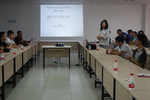 为加强必赢官网青年教师和研究生的英文科技论文写作能力,陈瑛教授作了《如何写英文科技论文》的专题讲座。陈瑛教授首先介绍了英文科技论文的构成。随后,陈教授详细地介绍了英文科技论文每个部分独特的比例分配、具体写作手法以及图表注释等问题,并且在每个部分都以具体论文为例,详细全面地描述了规范的英文科技论文的具体写作形式,图文并茂的形式让老师和同学们了解了在英文科技论文比例分配和图表注释的重要性。授课期间,陈教授深入浅出地讲述了有关自己写作英文科技论文的写作的具体实例,给老师和同学们带来写作上的共鸣与启迪。此外,陈教授鼓励老师和同学们有问题积极提问,并耐心地解答问题,精彩的讲课赢得了老师和同学们热烈的掌声。