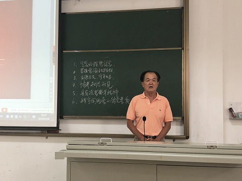 支部书记崔建兵老师从入党选择、入党动机等方面做了详细介绍,希望大家端正入党动机,积极向党组织靠拢,深刻把握时代发展要求。同时,也对18级新生们的大学生活提出美好希冀,期望同学们乐观向上,加强身体锻炼,做一个全面发展的大学生。