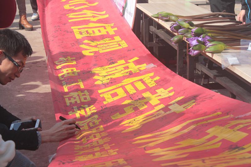本次倡议活动由必赢线路检测3003团学党支部、团委学生会负责。当大地还在沉睡,团学干部们一早起床为今日活动做好准备。“践行社会主义核心价值观,诚信考试,从我做起”这道横幅成为今天校园内最亮丽的一道风景。签字活动吸引了大批行人的驻足与询问,大家严肃庄重的签上了自己的姓名,签字后均有一束蓝莲花赠送。大家纷纷表示将会以身作则遵守校规,诚信考试。