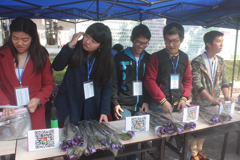 工作人员赠送蓝莲花