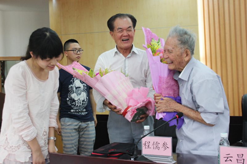 程儒参教授发表讲话,语言铿锵有力,情绪义愤填膺。他说,日本在中华民族所犯的滔天罪行给国民带来了沉重的灾难,南京大屠杀以及“三光”政策的血腥场景历历在目。得益于中国共产党中流砥柱的作用力,抗日民族统一战线的组成以及舍身为国的勇气与精神,最终赢取了抗日战争的胜利。他借用习近平总书记“忘记历史就意味着背叛,否认罪责就意味着重犯”这句话告诫当代大学生,勿忘历史,奋发图强,弘扬爱国主义精神。讲座因云昌舜讲述个人抗战故事而升华,虽已年迈渐高但满腔爱国热情依旧不减,与学生们分享当年抗战时期弃笔从戎的经历。通过讲述姐姐惨遭日寇毒害以及当年坎坷的磨难岁月,学生们感同身受,对当年历史以及中国国难有了更为切实的认识。他还告诫我们当代青年学生,一定要扛起中华民族的脊梁,勿忘国耻,力争为振兴中华添锦献力。