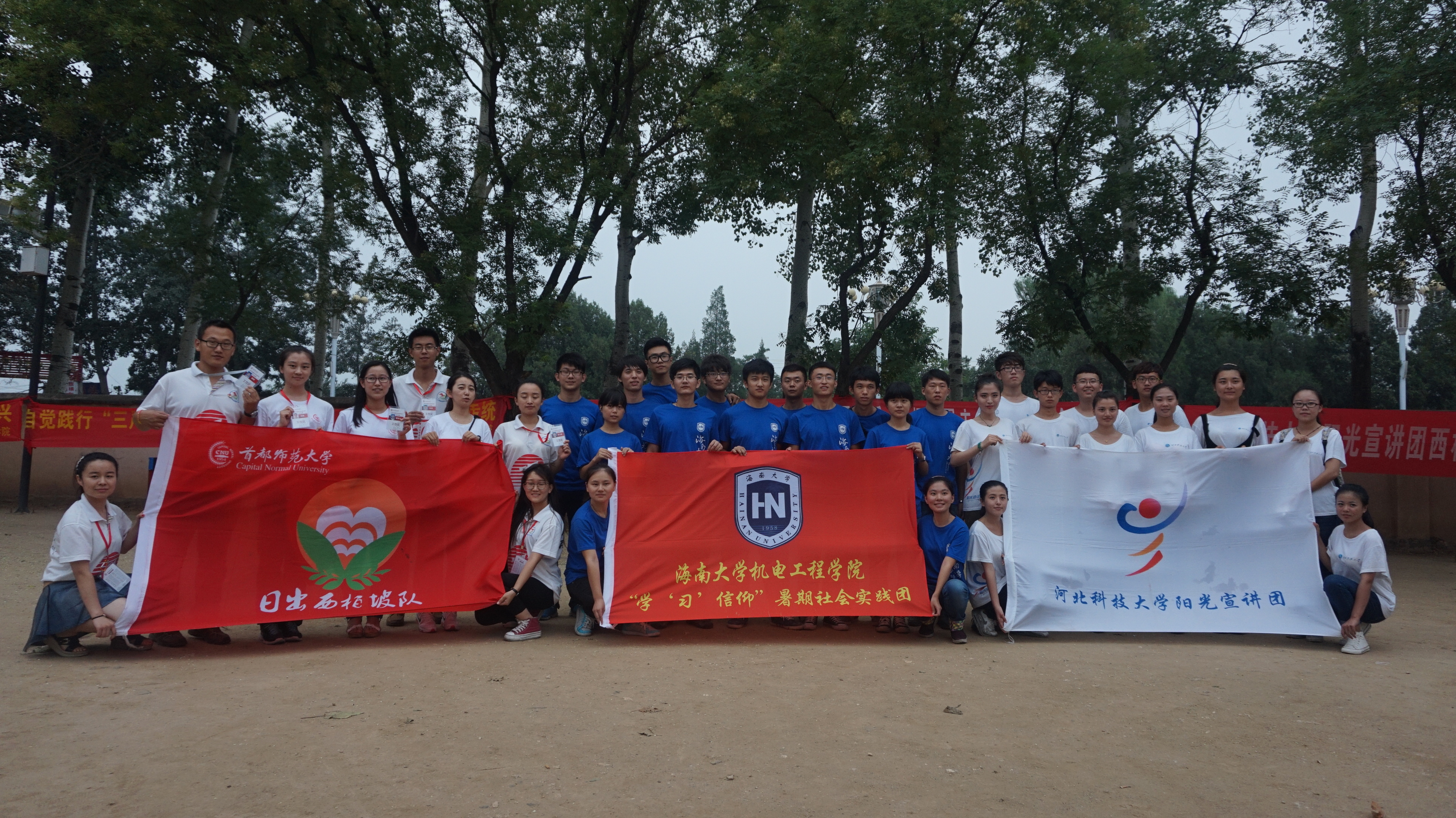 2015年7月,为响应团中央的号召,配合全国大中专学生志愿者暑期文化科技卫生“三下乡”社会实践活动的开展,必赢线路检测3003no1组建了“学‘习’信仰”暑期社会实践队,实践队由十六名学生组成,由王寅和李青老师带队,前往被誉为“新中国从这里走来”的西柏坡开展暑期社会实践活动。本次暑期社会实践活动中,团队在团省委和校团委的悉心指导下,在学院的大力支持下,在河北省平山县团委的热心帮助下,他们学习红色历史,感受红色文化,深入探讨习近平总书记系列重要讲话精神,树立马克思主义信仰,沿着“红色之旅”开展了一系列实践活动。他们走进红色革命老区,和当地农民同居同住同劳动,感受革命老区人民的生活,并以《革命老区的发展现状的研究》、《革命传统教育对当代大学生理想信念教育的作用》、《革命摇篮——红色旅游模式对海南红色旅游资源的开发利用的启示》、《互联网+背景下红色旅游资源的开发与利用》四个课题为核心展开专项调研,关心老区人民发展。同时,团队还联合了首都师范大学和河北科技大学在西柏坡革命老区开展了一系列的宣讲活动,将习近平总书记系列重要讲话精神通过朗诵、演讲、组诗等形式向西柏坡游客和学生宣讲,进一步扩大习近平总书记系列重要讲话精神影响力。