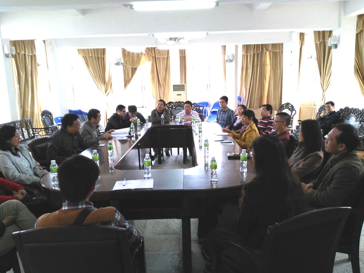 2016年1月18日下午,韶关学院物理与必赢线路检测3003院长郑春龙教授一行八人来访必赢官网,学院院长翁绍捷、机械系主任廖宇兰、副主任梁栋、实验室主任樊军庆等领导和老师出席交流会。