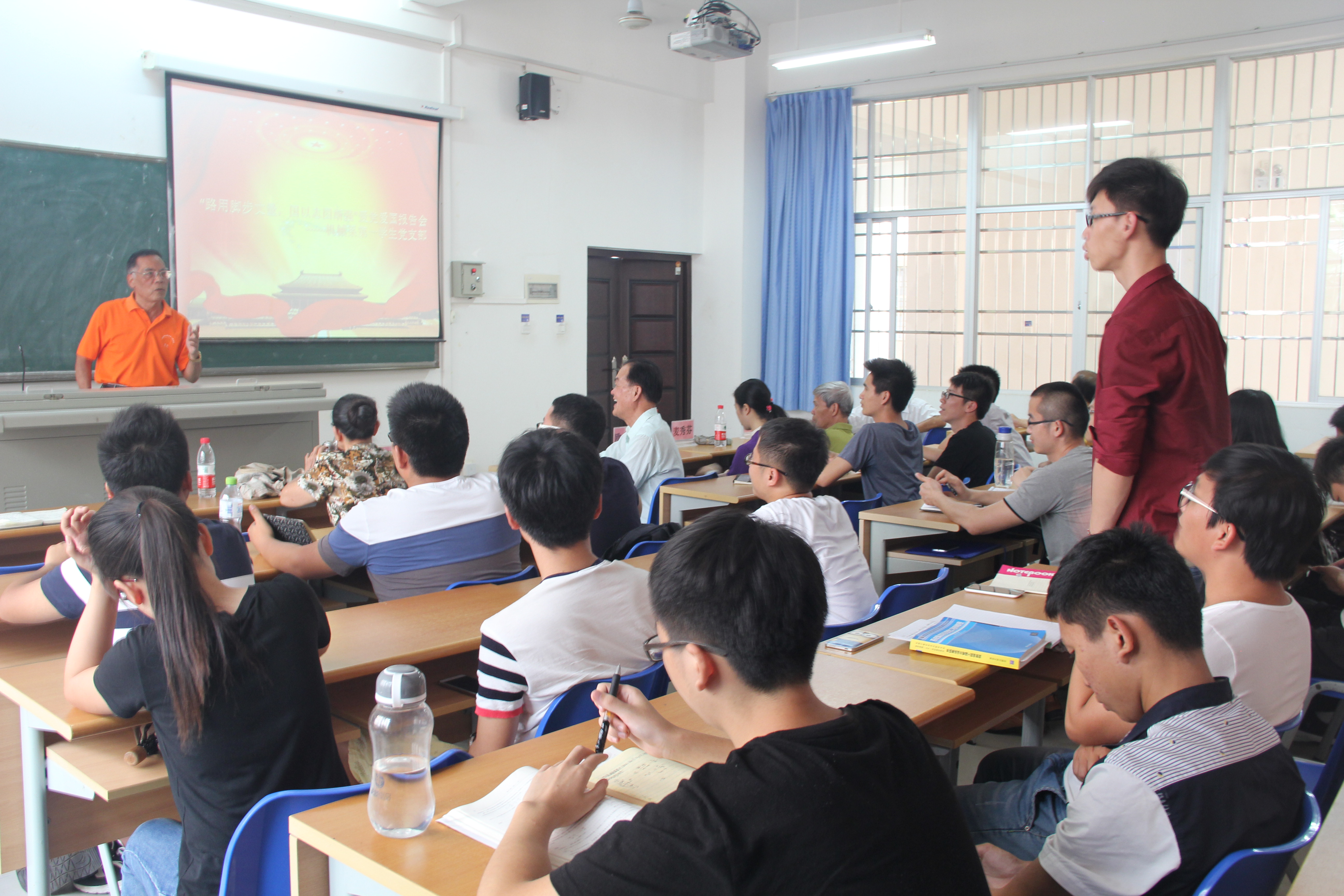 活动开始后,主持人首先邀请程老师为大家做主题报告。程老简明扼要地为大家讲述了党的发展史,祖国的近代屈辱史,深刻表明了党领导中国人民走向繁荣富强、实现中华民族伟大复兴的历史必然性,使我们更加深刻的了解党史、国史,增强我们分辨是非的能力,从而紧跟党的步伐,为实现中华民族伟大复兴而不懈努力。随后,进入师生互动环节,杨云山老师与同学们互动发言,就腐败问题的根源与大家进行了探讨和交流,告诫我们党员同志要多了解学习党史、国史,这样才能真正的了解我们的党和国家,从而坚定理想信念,抵挡住“糖衣炮弹”的诱惑,做一名合格的中共党员。陈传汉老师也劝导大家多读书,多向我们党组织的榜样同志学习,从而提升我们的思想道德境界,完善我们的人格品质。活动中,李贺、朱凯峰等同学就家乡变化和其它问题向老师积极分享、询问和探讨,老师也一一给出了详细深刻的回答。活动最后,李宏副书记对程儒参、杨云山等老师的到来表示衷心的感谢,赞誉几位老师退休后仍然心系海大学生发展的敬业精神,更希望在身体条件允许的条件下,今后能邀请几位老师到必赢官网做报告,与同学交流学习。