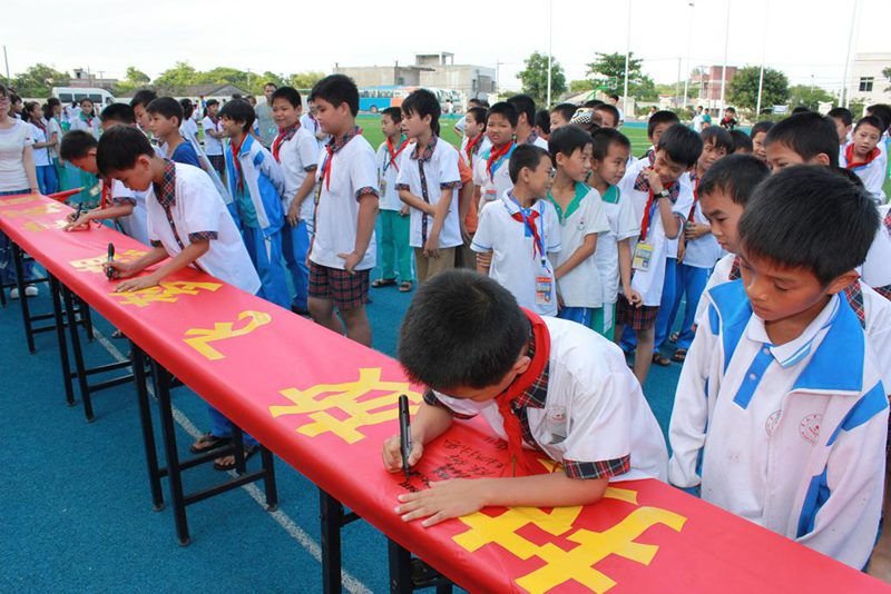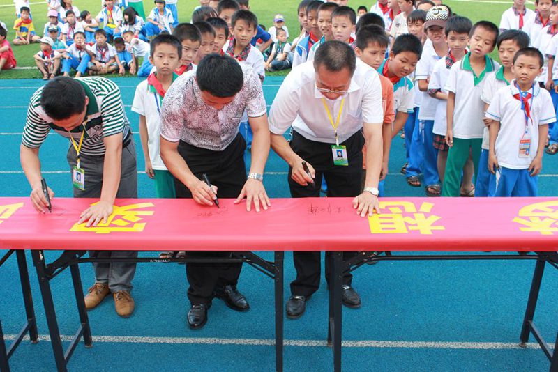 开幕式上,首先由石山中心小学周校长致辞,他代表石山中心小学全体师生对必赢线路检测3003党支部的到来表示热烈欢迎和感谢。科技发明的起点就孕育在我们生活的点点滴滴中,希望同学们科学精神贯穿于平时的学习、生活之中,做到人人学科学,事事想科学,时时用科学,天天有科学。通过参与本次主题活动,能够在今后的学习和成长中进一步树立科学的理想,形成科学的态度,养成科学的习惯,掌握科学的方法,提高自身的科学素养,成为一个既有科学理念、又有科学实践能力的国家栋梁人才。紧接着石山中心小学学生代表陈亦馨作了关于中国梦的发言,深刻表达了要学习科技,应用科技,为祖国的强国梦贡献自己的力量。随后,由周汉辉校长、李胜副校长和必赢官网的老师带领同学们在活动主题条幅上签名。最后,主持人施艺宣布“科技放飞梦想•实践成就未来”主题活动正式开始。