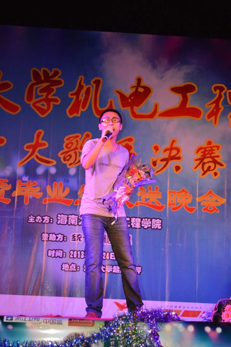 晚会主要分为两个环节,第一部分是精彩的表演环节,第二部分是扣人心弦的比赛环节。随着未完成乐队激情四射的开场表演,晚会拉开帷幕。第一环节中,十位入围决赛的选手表演了他们精心排练的以毕业为主题的歌舞剧,他们用一首首经典的老歌演绎出了毕业之时的不同情感。歌舞剧最后歌手们合唱了一首《当》,“让我们红尘作伴活得潇潇洒洒,策马奔腾共享人世繁华,对酒当歌唱出心中喜悦,轰轰烈烈把握青春年华。”唱出了大四学长学姐豪情壮志,也唱出了他们对母校海大的无限留恋!比赛环节中,现场观众已然人山人海,舞台被围的水泄不通。面对如此热情的观众,选手们化压力为动力都拿出了自己的看家本领一展歌喉。观众们的情绪都被调动了起来,他们用献花、拥抱等各种方式表现出了自己对选手们的喜爱。晚会期间同时穿插了大四学长学姐的毕业演出,摇滚、歌曲、还有火辣的拉丁舞,他们用一次难忘的表演结束了自己的大学生涯。
