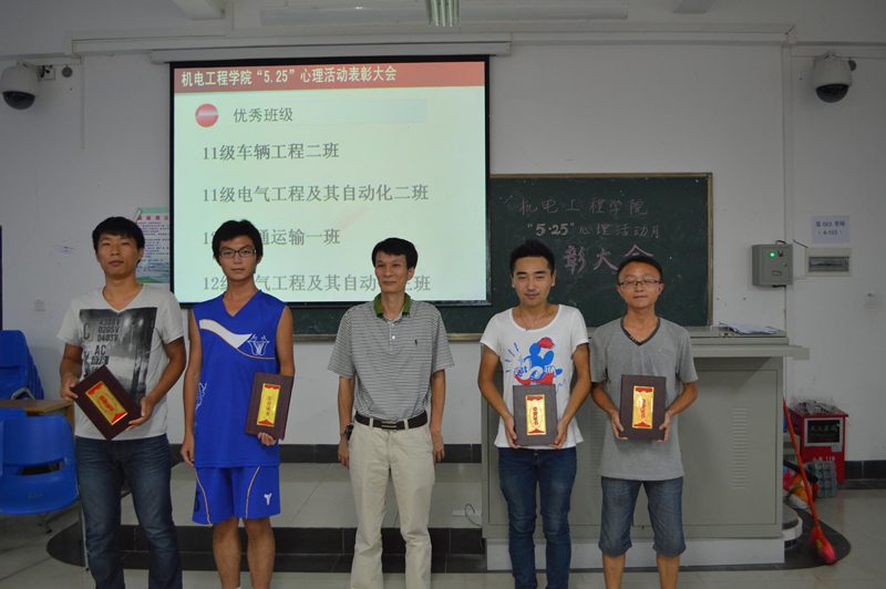 2013年6月7日下午4:40,必赢线路检测3003no12013年5•25心理健康宣传月表彰大会在4教103教室拉开帷。必赢线路检测3003党委黄国标副书记,学工办主任陈秀妍老师,辅导员何映敏、崔万春、崔建兵老师,以及在本次活动中获得表彰的先进班级和个人出席表彰大会,来自各班级班长和心理委员近百名学生参加了本次表彰会。