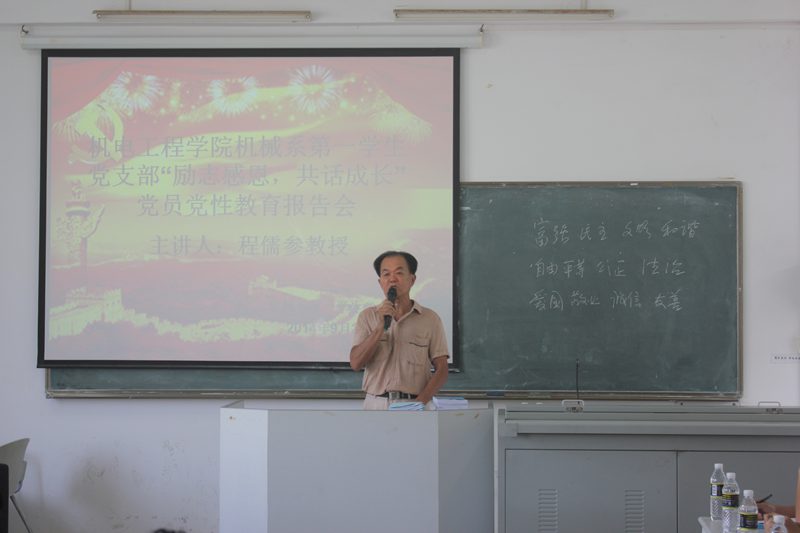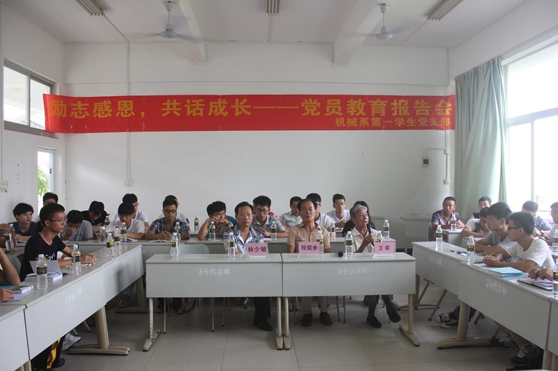 为提高党员自身意志,传播服务他人的理念,激励党员励志感恩,奋发成才,报效祖国的社会责任感,必赢线路检测3003机械系第一学生党支部于2014年9月21日9:00在三教304教室召开关于“励志感恩,共话成长”党员教育报告会。出席此次报告会的领导和嘉宾有原必赢线路检测3003no1统战部部长程儒参教授、原必赢线路检测3003no1纪委办公室主任王荣教授、原必赢线路检测3003no1统战部副部长林少敏教授、机械系第一学生党支部书记崔建兵老师。支部全体学生党员、预备党员,入党积极分子共计五十多人参加会议。报告由崔建兵老师主持。