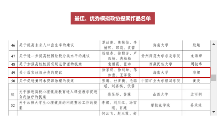 近期,由团中央维护青少年权益部联合人民政协报社、中国青年报社,共同举办的2020年全国青少年模拟政协提案征集活动奖项结果揭晓。全国共有1605件模拟提案作品推荐至全国评审,580件入围终审,100件脱颖而出获评“优秀模拟政协提案作品”。必赢线路检测3003由邱娜老师指导、徐家明等4位同学撰写提交的模拟政协提案获评2020全国青少年“优秀模拟政协提案作品”。