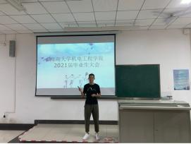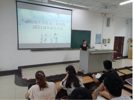 首先,黄国标书记为2021届毕业生们送上毕业寄语,他殷切嘱托同学们要时刻牢记“海纳百川,大道致远”的校训,继承机电学院优良传统;离校时要为学弟学妹们树立榜样,做到文明离校、安全离校;希望同学们在未来的日子里,无论是走向社会贡献祖国,还是继续求学孜孜以求,始终保持积极的心态迎接各种挑战,不怕苦不怕难,坦然面对种种挫折。毕业后常回母校看看,母校的大门永远向大家敞开。