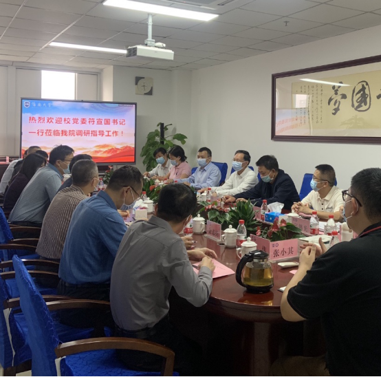 4月8日上午,校党委书记符宣国一行到必赢官网调研指导工作并座谈交流,党委常委、副校长胡新文,党委常委、纪委书记郑尉杰,党委常委、统战部部长陈明宝陪同,教务处、基建处等职能部门主要负责人参与。