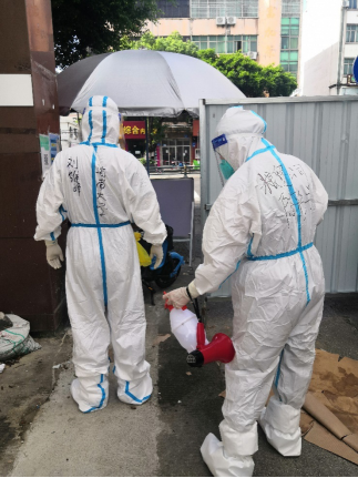 刘老师虽不是本地人,但对海南的热爱是绝对炙热与真诚。万宁市万城镇高风险级的“上灶村”内遍布多个4层、5层未安装电梯的自建楼房,面对万宁“火辣辣”的天气,工作人员需在各个楼房间来回穿梭,不惧艰辛重复着上下楼的动作。在相对狭窄、不通畅的工作环境,不断的上下楼极大的透支了志愿者体能,刘老师面对困难咬紧牙关,即使汗流浃背,依然坚持为每一户居民进行核酸信息采集。刘老师告诉我们,工作过程中常常会因汗水流入手套手指区域,导致无法正常操作手机,为了不让手上的汗水影响信息的录入需抬高胳膊,让手套里的汗水顺着胳膊倒流到脚部,当任务完成脱防护服时,发现鞋套里已是满满的汗水,犹如装水的水袋。人们总说海南的太阳很热,但所有医护人员以及志愿者却将这种酷热转换成一股股暖流直入人心。正如刘老师所说,“能为当地居民们带来安全健康和心灵安慰,坚决防控疫情,尽快取得这场特殊战争的胜利,再苦再累也值得”。