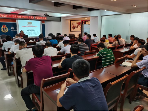 金志扬副院长围绕《海南自由贸易港建设总体方案》背景下道路运输管理有关问题进行专题辅导授课,就海南自由贸易港的背景、实质等进行深入讲读,并重点结合交通运输部对道路运输发展的有关指导要求、省政府加快海南省道路货运行业转型升级促进高质量发展实施意见和客货运、法制、驾培维修、信息技术等如何适应海南自贸港建设需要进行深入浅出的讲解。授课内容信息量大、针对性强,具有很强的指导意义,让全体干部职工进一步加深了对海南自贸港建设总体方案有关政策的了解,激发了全局干部职工在海南自由贸易港建设中勇于担当的信心和决心。