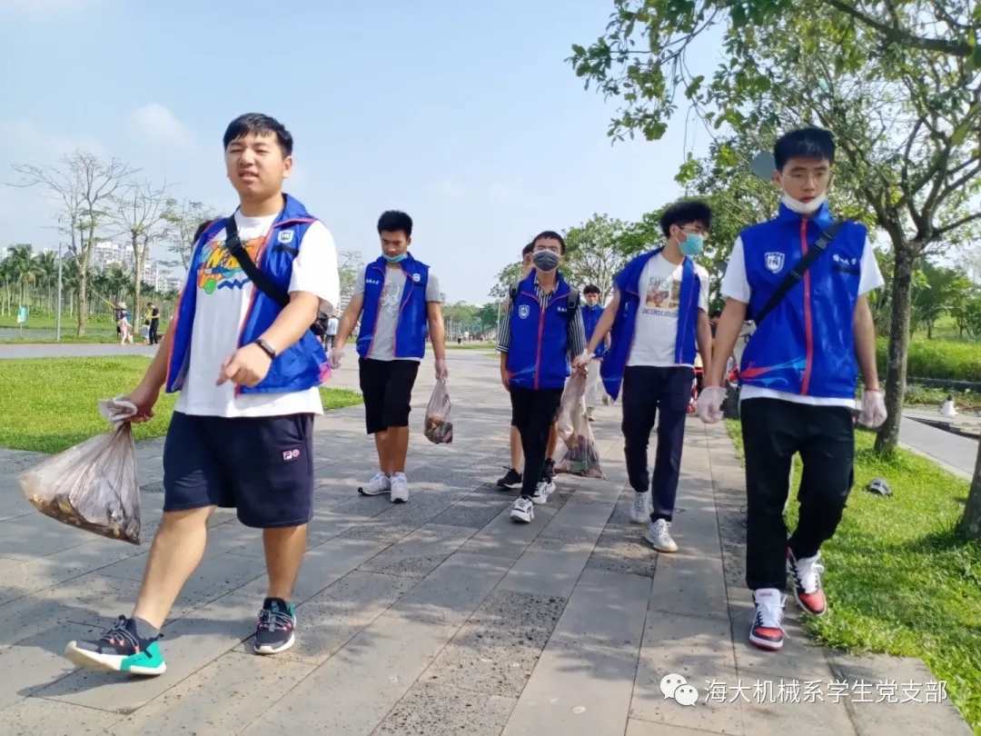 早上8点志愿者们就兴致勃勃地从海大北门乘坐公交车前往湿地公园,到达公园后在支委的领导下迅速分组开展工作。湿地公园环境优美,有大量游客在公园内踏青采风,但在这山清水秀的景色中却有些许垃圾破坏风景。志愿者们戴上手套,拎上垃圾袋,分组后有人沿着小道,有人沿着小溪,也有人走上小山坡,大家仔细搜寻垃圾,在两小时的努力后“收获满满”,垃圾袋已经被各种糖纸、饮料罐等填满。