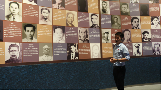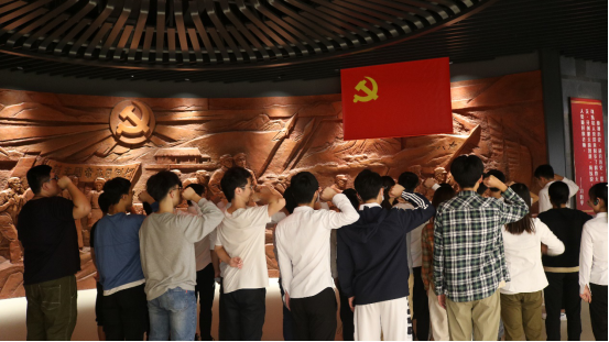 之后来到《红旗不倒》展区,展区着重反映中共琼崖地方党组织紧紧依靠人民群众,历经土地革命战争、抗日战争和解放战争艰苦卓绝的孤岛奋战,开创了二十三年红旗不倒的光辉篇章。其中以冯白驹同志为代表的中国共产党人在海南进行艰苦卓绝的革命斗争中所培育和形成的革命精神更深深地感染在场所有人。随后,全体党员在党旗前重温入党誓词,庄严宣誓,永记战斗英雄,传承革命精神。