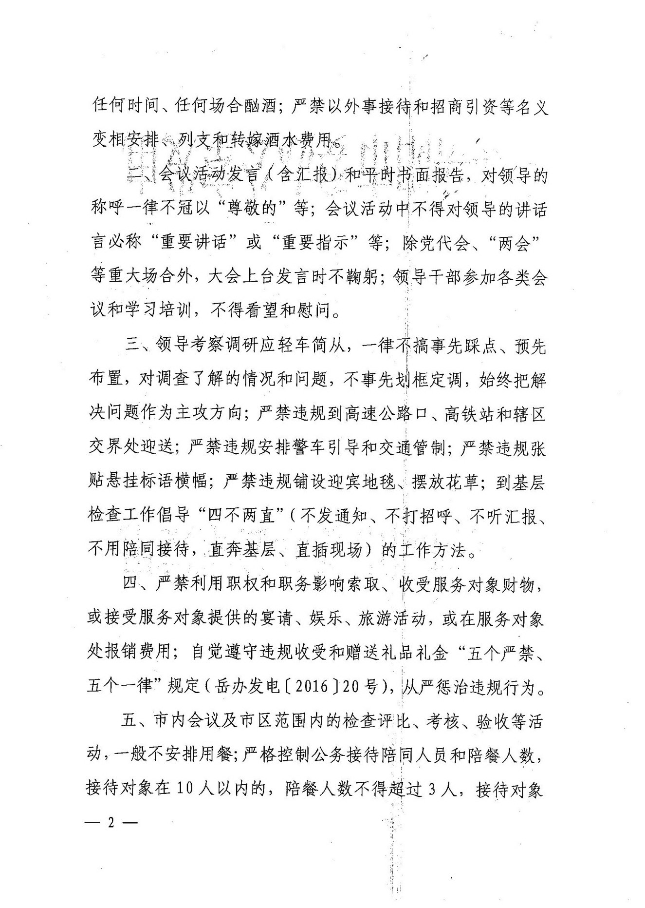 现将《中共岳阳市委办公室 岳阳市人民政府办公室 关于重申和严明有关作风纪律要求的通知》(岳办发电〔2017〕5号)转发给你们,请认真组织学习,并遵照执行。