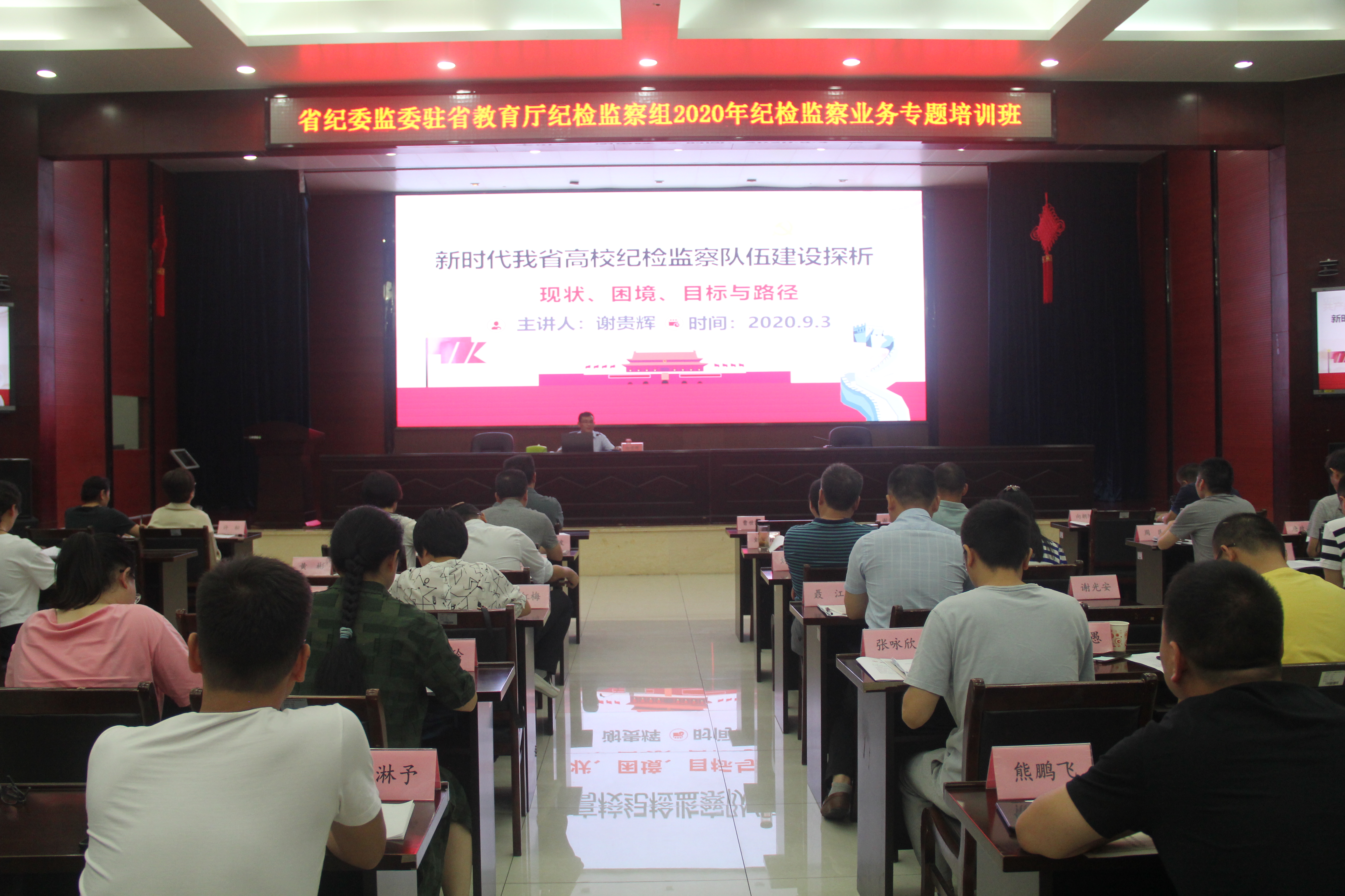 8月31日-9月3日,湖南省纪委监委驻省教育厅纪检监察组2020年纪检监察业务专题培训班在省委教育工委党校举办。省纪委监委驻省教育厅纪检监察组组长、一级巡视员、省教育厅党组成员、省委教育工委委员曹世凯出席并作专题讲座,驻省教育厅纪检监察组及其各纪律审查室、厅机关纪委、省内部分高校、厅直属单位的纪检监察干部共90余人参加培训。