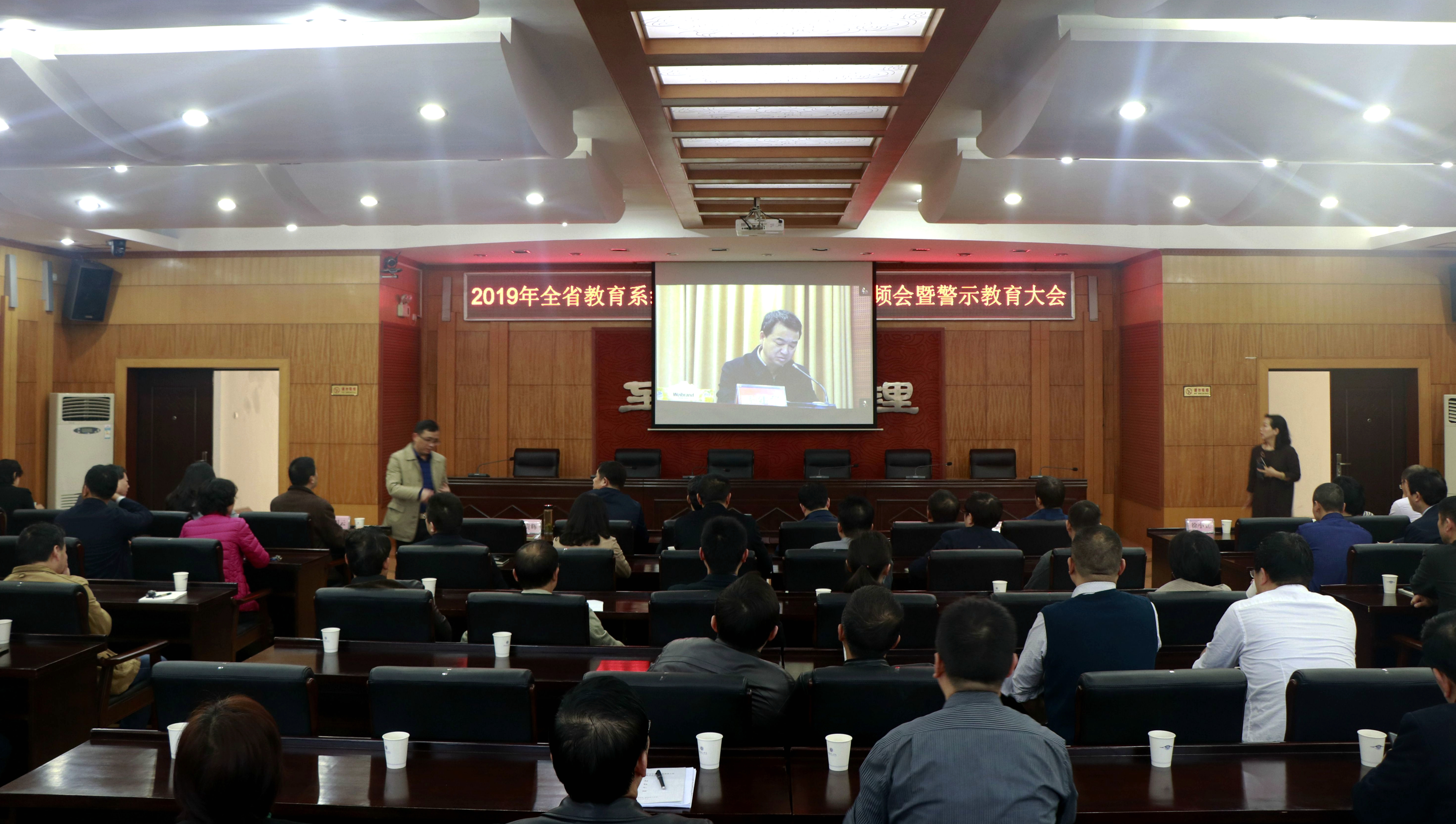 省教育厅党组书记、省委教育工委书记、厅长蒋昌忠,省纪委常委黄立峰出席会议并讲话。省纪委省监委驻省教育厅纪检监察组组长曹世凯作纪检监察工作报告。全面从严治党工作视频会议由省教育厅党组成员、省委教育工委副书记王建华主持。警示教育大会由省纪委省监委第四纪检监察室主任张双春主持。
